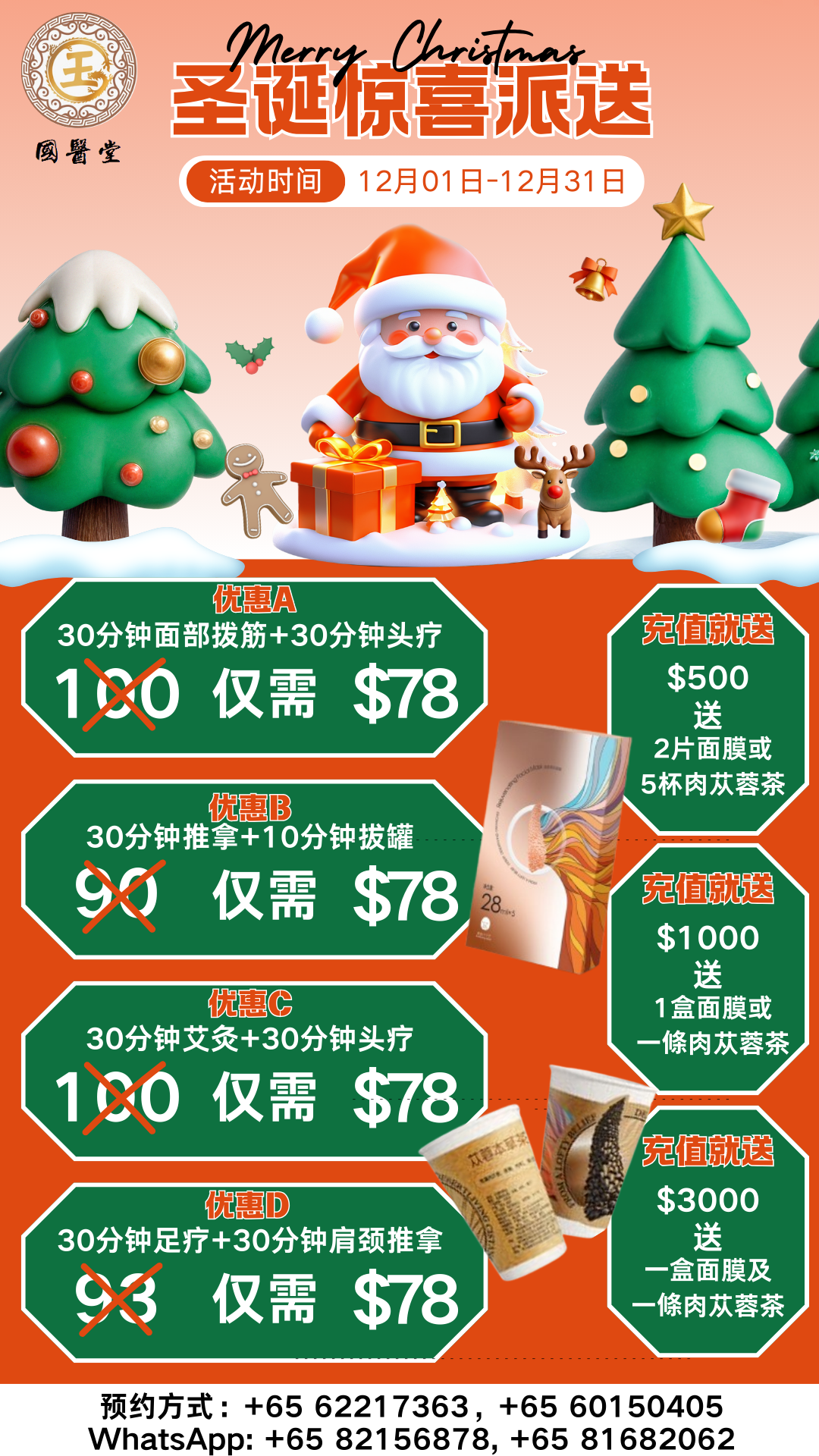 EXCELLENTBased on 384 reviews Marcela Quesada14/04/2023Fan me dió el mejor masaje de mi vida, una técnica diferente y muy relajante El lugar es hermoso y muy limpio. Súper recomendado! Stef P13/04/2023It relieves my pain in seconds! Amazing ! Dr Ong is great ! huzan banaji11/04/2023Excellent must visit!! The therapist Fan knows his stuff and i feel very relieved of my back pain Margaret Yen11/04/2023Had a wonderful 60 minute foot massage after walking the streets of Chinatown. The staff was very professional, and the center was very clean. Exactly what I needed after a long day of walking. Would recommend! Josh Chen11/04/2023Waking in Singapore took a number on my feet and body. I randomly stumbled upon this foot massage parlor and was not disappointed. I got a full body for an hour and it was very relaxing. My body now feels a lot more relaxed and am able to walk in Singapore a lot more comfortably. Arturo ST10/04/2023Very good service, came for treatment and massage, i have try 3 different massage... excellent, full budy massage was excellent and foot massage too, i got acupuncture treatment by Dr Chow, very knowledgeable and caring, gotmy leg tendom pain fixed i will come back next trip to Singapore, staff very friendly, make you feel like home, they speak English and Chinese, appointment maybe arrange by whats app. christine wang10/04/2023今天第一次来国医堂,第一次看到邹博士的印象是很严肃,他到底行不行啊?可是没有想到,他一上手就知道有没有了!很专业很严谨很敬业的操作手法,让你不禁感叹确实好厉害!当时做完骨盆调整就肉眼发现肚子小了很多!很开心!谢谢你,邹博士! George Ie09/04/2023Dr Chow is good and skillful. Team is also professional. Overall helps me to recover from aches and great experience. jeff siwei08/04/2023Doc Chow helped me with my pain effectively